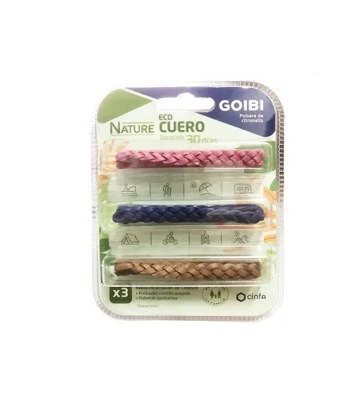 Quick view Añadir a la cesta Lista de deseos Añadir a comparar Goibi Pulsera Citronella Eco Cuero Trenzado Precio 9,95 € 3 pulseras de cuero ecológico trenzado aromáticas con citronela natural. Cada pulsera ofrece protección frente a mosquitos hasta 30 días.