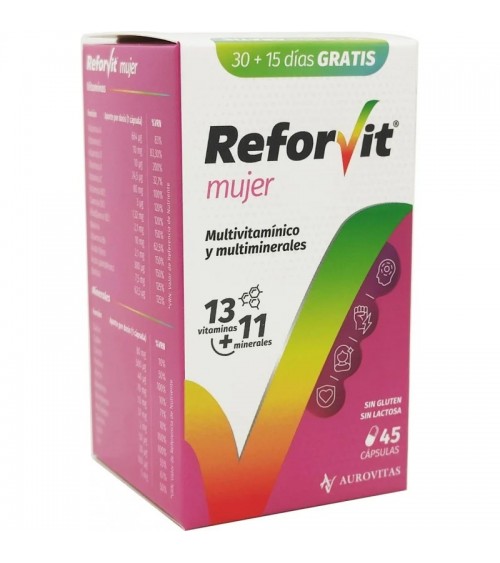 Quick view Añadir a la cesta Lista de deseos Añadir a comparar Reforvit Mujer 45 Cápsulas Precio 8,95 € 1 envase de 45 cápsulas vegetales. Complemento alimenticio específico para mujer que ayuda a equilibrar energía, bienestar hormonal y vitalidad...