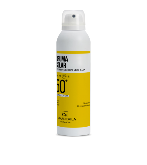Quick view Añadir a la cesta Lista de deseos Añadir a comparar Cimadevila Solar Bruma SPF 50+ 100 ml Precio 11,95 € Frasco de 100 ml. Spray solar ultra ligero y fresco sobre la piel. Aplicación rápida y todavía más práctica gracias a su distribución en spray...