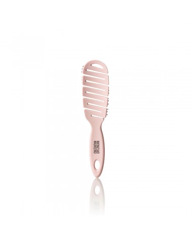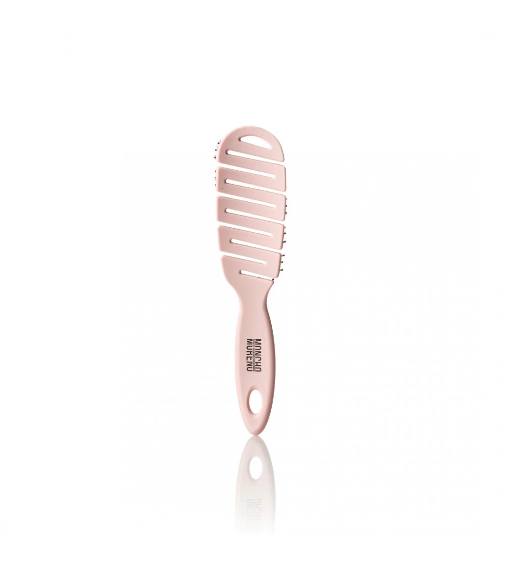Moncho Moreno mini magic brush rosa es un cepillo perfecto para ir de viaje. De estructura curvada, flexible y ventilada diseñado según la forma de la cabeza para masajear el cuero cabelludo y activar la circulación sanguínea con una combinación perfecta de púas naturales de jabalí y púas sintéticas que evita roturas del cabello mientras desenreda sin dar tirones.