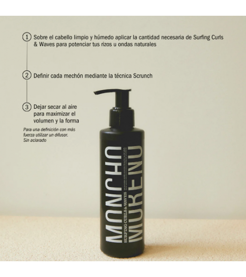Moncho Moreno Gel Surfing Curls & Wave es un gel de definición de rizos que potencia su forma y elasticidad a base de ingredientes y aceites naturales: aguacate, coco, mango y leche de coco.