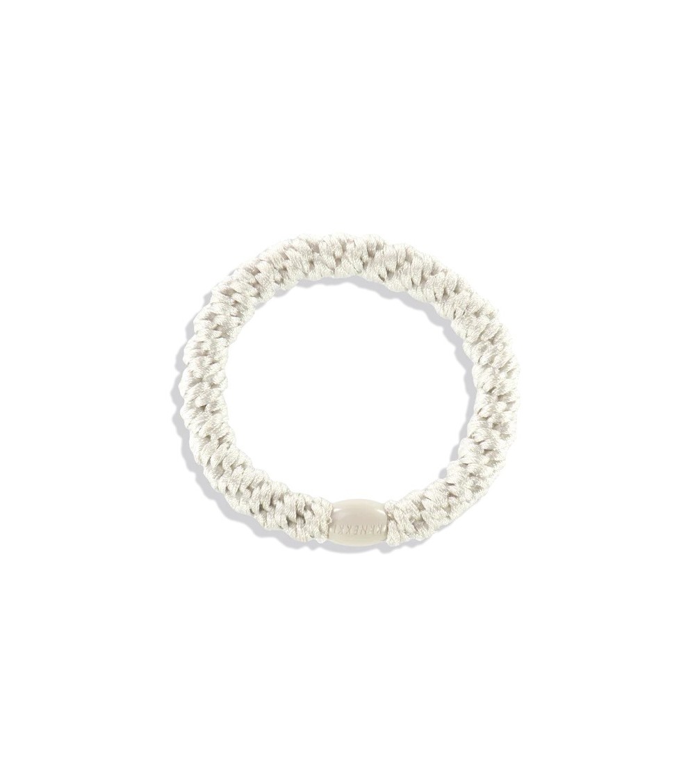 La Kknekki White es una goma de pelo icónica por su suavidad, durabilidad y diseño exclusivo. Gracias a su tejido trenzado, no rompe, marca ni daña el cabello, ofreciendo una sujeción firme y cómoda sin tirones.
