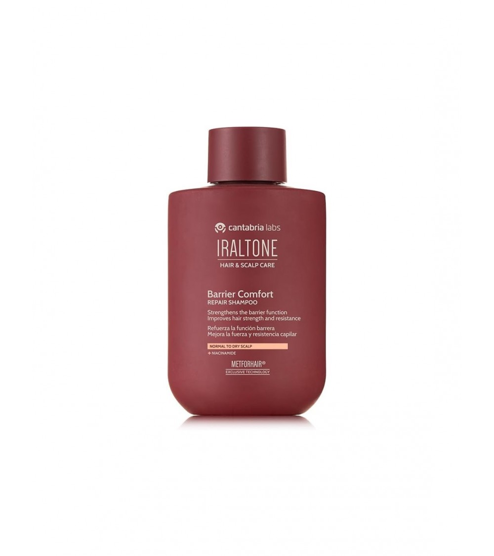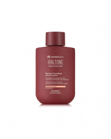 El Iraltone Champú Barrier Comfort es un champú reparador y delicado que limpia suavemente el cabello y el cuero cabelludo mientras refuerza la función barrera natural. Está especialmente formulado para aliviar la sequedad del cuero cabelludo y aportar hidratación, dejando el cabello con un aspecto fuerte, sano y con más resistencia.