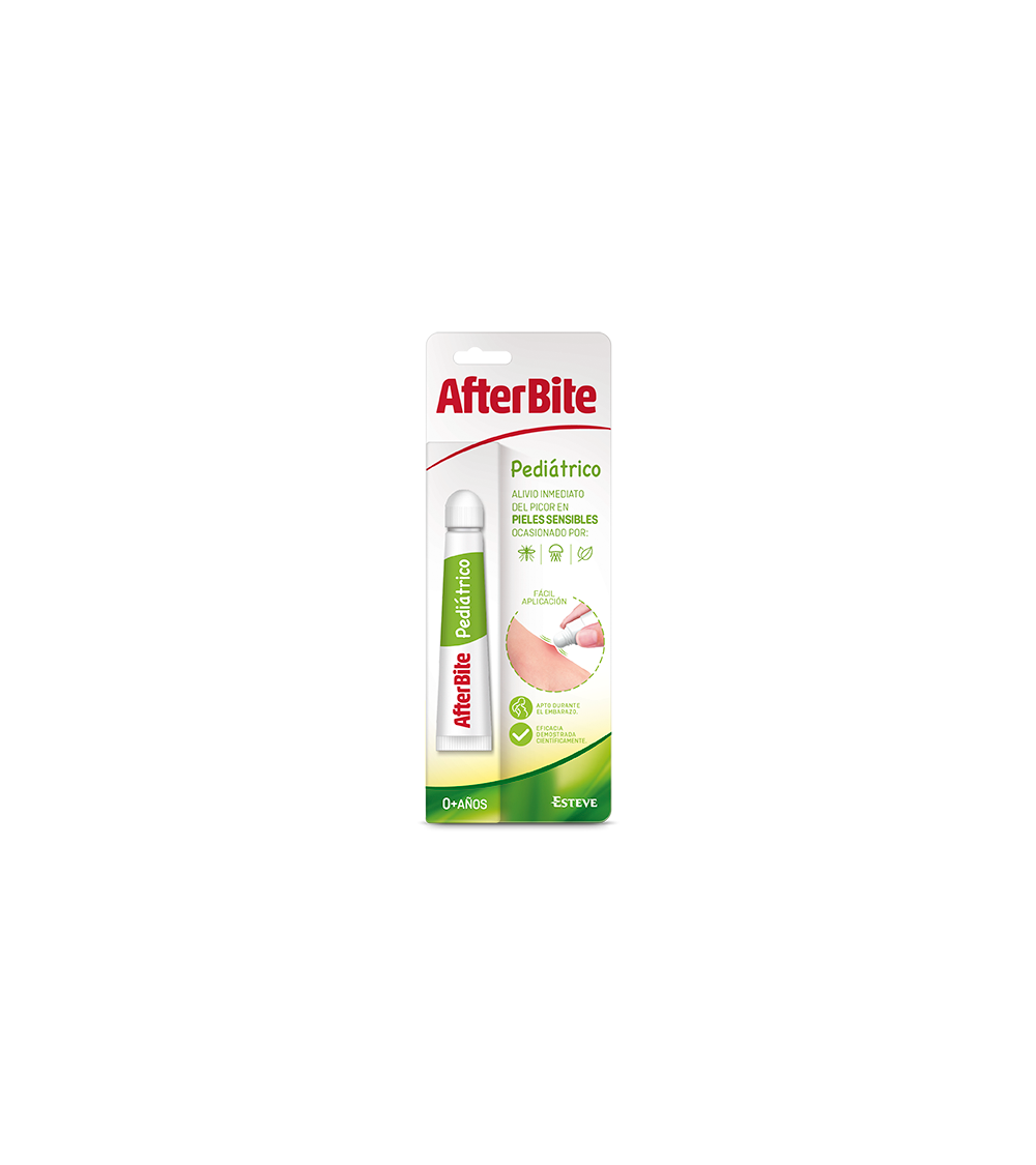 AfterBite Pediátrico alivia el picor ocasionado por picaduras de insectos (mosquitos, avispas, abejas o tábanos), medusas y plantas. Está formulada específicamente para aliviar el picor en las pieles más sensibles. Gracias a su fórmula a base de ingredientes naturales que proporciona una sensación de frescura y bienestar en la piel hace que sea ideal para niños y bebés.