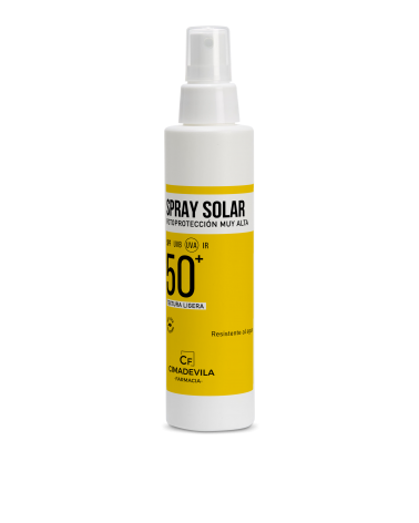 Cimadevila Spray Solar SPF 50+ es un spray de textura ultraligera, de rápida aplicación y absorción que protege e hidrata la piel del cuerpo.