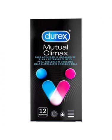 Durex Mutual Climax está diseñado para intensificar el placer de ambos miembros de la pareja durante la relación sexual. Estos preservativos cuentan con una textura de puntos y estrías que incrementan la estimulación femenina, mientras que un lubricante especial con benzocaína en el interior ayuda a prolongar la duración masculina. Disfruta de una experiencia sincronizada y maximiza el placer compartido con Durex Mutual Climax..