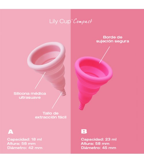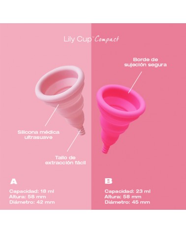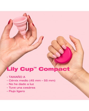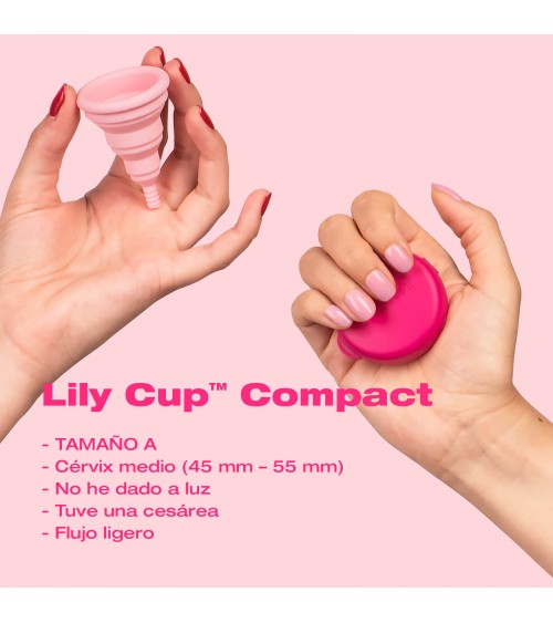 ¡Aquí tienes la primera copa menstrual plegable, Lily Cup Compact, que se dobla en plano y cabe en un pequeño estuche protector! Un estuche que puedes llevar donde quieras, en tu mochila, bolso o incluso en el bolsillo. Y cuando tengas el periodo, la podrás usar ¡durante 8 horas seguidas!