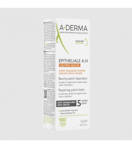 Bálsamo-parche reparador EPITHELIALE A.H ULTRA BALM para una acción reparadora, calmante e hidratante rápida e intensa en todo tipo de pieles agrietadas, con grietas y fisuras.