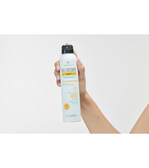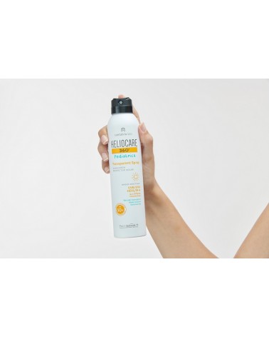 Heliocare 360º Pediatrics Transparent Spray SPF 50+ tiene formato en spray continuo transparente, que permite proteger fácilmente la piel de los niños. Eficaz incluso sobre la piel mojada gracias a su fórmula WET SKIN, con un acabado invisible y de rápida absorción. Hipoalergénico, resistente al agua y resistente a la arena.