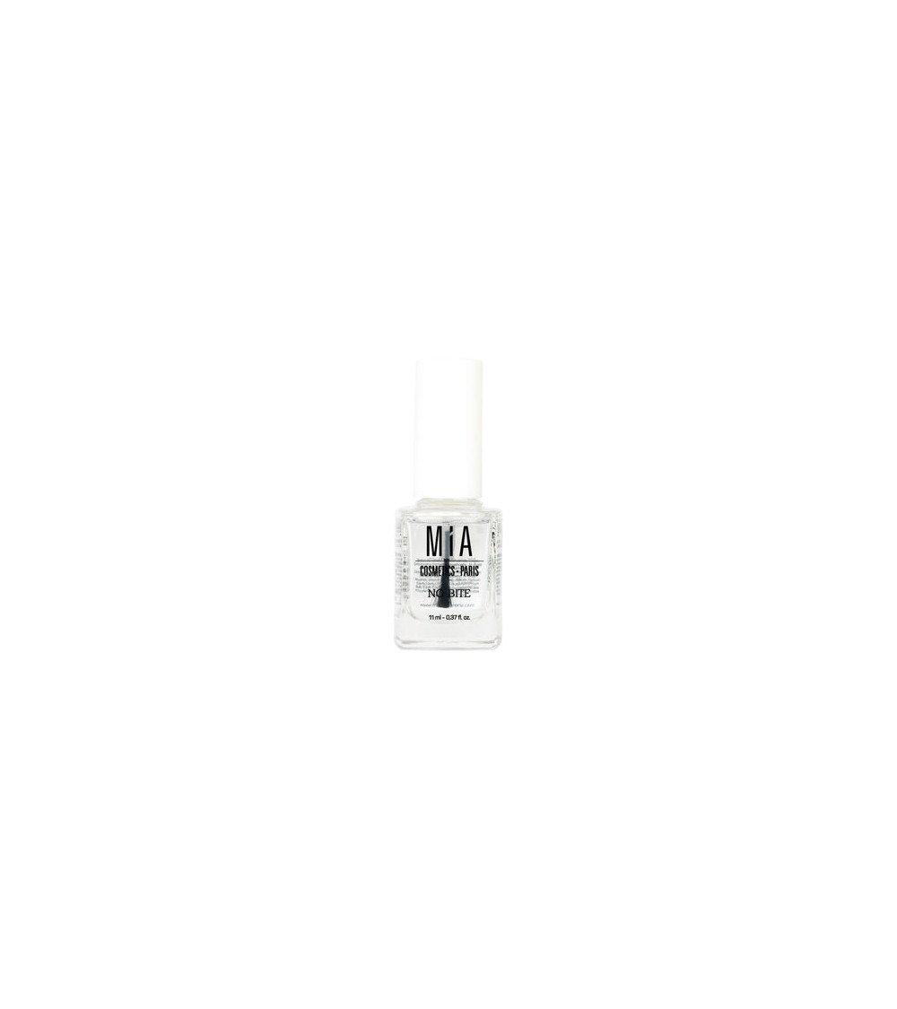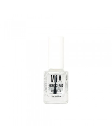 Mia esmalte no bite: Tratamiento antimordedura. Formulación novedosa por sus dos activos principales que disuaden efectivamente de morder las uñas y cutículas, Denatonium Benzoate, que proporciona un sabor amargo inocuo, y extracto de ajo, antiséptico y sin olor. Beneficios