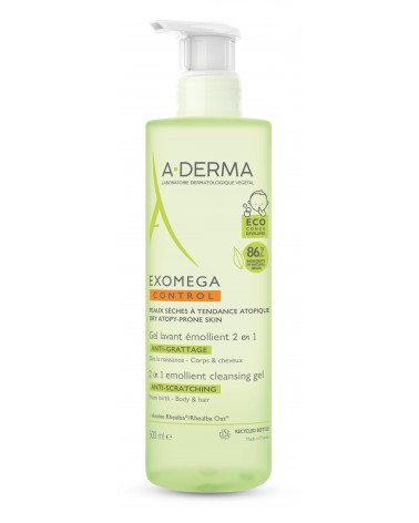 A-derma Exomega Gel emoliente 2 en 1: Gracias a su fórmula 2 en 1 con un 86% de ingredientes de origen natural, el Gel limpiador emoliente EXOMEGA CONTROL calma la piel del bebé y simplifica la vida de los padres. Beneficios: