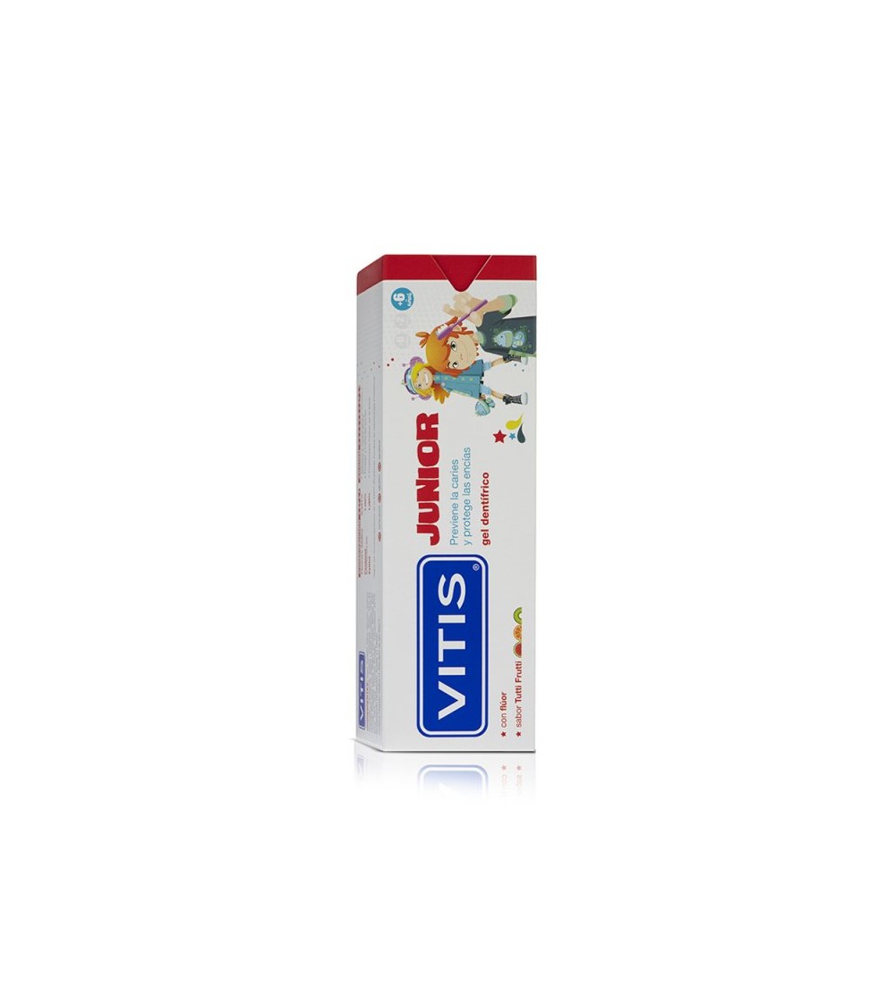 El gel dentífrico VITIS Junior, ha sido especialmente formulado para la higiene bucodental de niños de más de 6 años, cuando se inicia la erupción de la dentición definitiva.