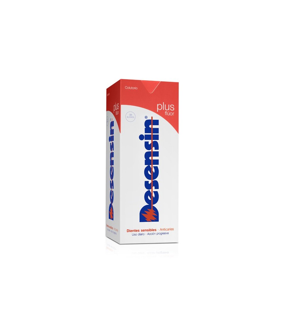 Desensin plus colutorio: Desensin plus flúor colutorio complementa la acción del cepillado con una acción desensibilizante progresiva que, además, aporta un extra de flúor para prevenir la aparición de caries. Su formato de enjuague bucal permite llegar a las zonas de difícil acceso y mantener los principios activos en boca durante más tiempo.