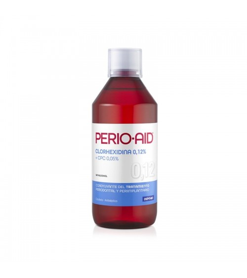 PERIO·AID 0,12% tratamiento colutorio es un antiséptico bucal coadyuvante al tratamiento de las enfermedades periodontales y periimplantarias a base de Clorhexidina 0,12% (CHX) y Cloruro de Cetilpiridinio 0,05% (CPC).