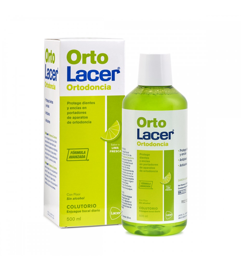 OrtoLacer Colutorio lima fresca es un enjuague bucal de uso diario especialmente desarrollado para portadores de aparatos de ortodoncia. Evita la formación de placa dental (principal factor desencadenante de la gingivitis), y previene la caries.