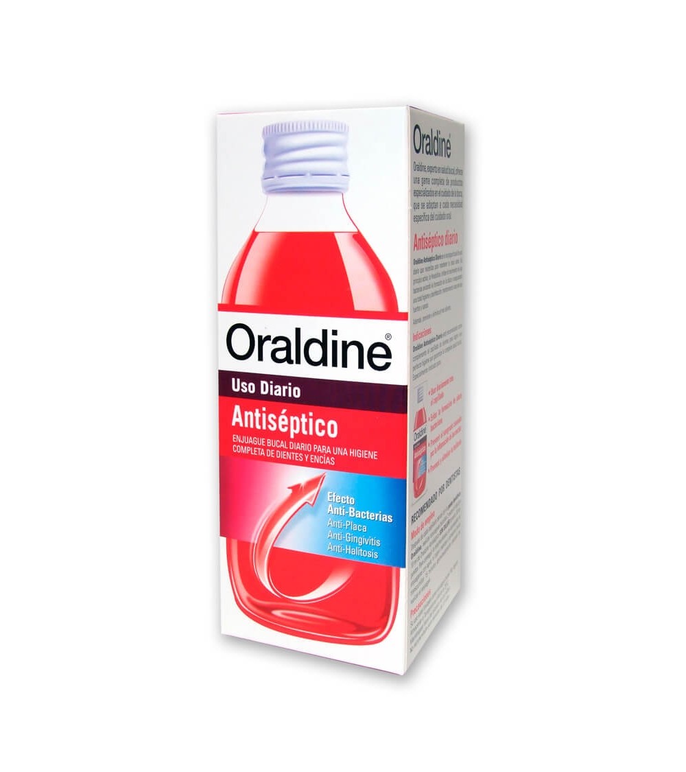 Después de cada cepillado con la pasta dentífrica Oraldine, realizar enjuagues bucales con 10ml de Oraldine Antiséptico SIN DILUIR durante 30 segundos. Para conseguir la máxima eficacia, es aconsejable no enjuagarse con agua, ni ingerir bebidas o alimentos hasta transcurridos 15 minutos
