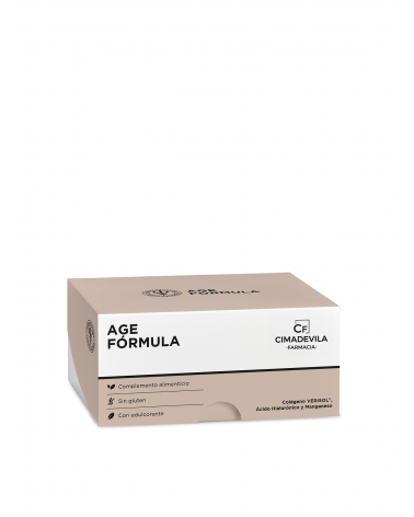 Cimadevila Fórmula antiedad es un complemento alimenticio a base de Colágeno, Ácido hialurónico, Manganeso, Trehalosa y Xilitol. Es un complemento útil para contrarrestar las arrugas y favorecer la elasticidad, la firmeza y la luminosidad de la piel. Ideal para personas que buscan un tratamiento completo IN&OUT.