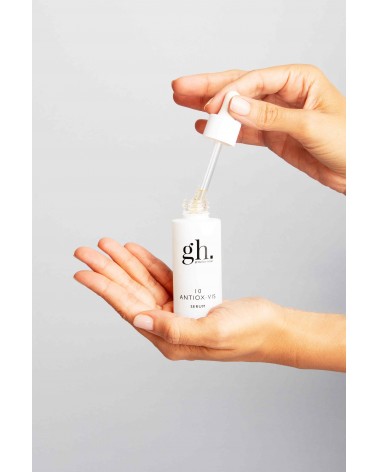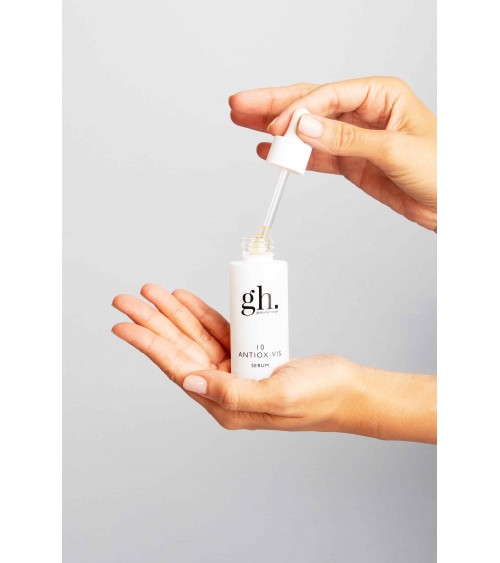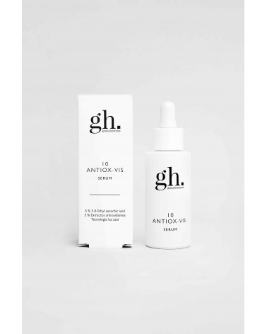 GH 10 ANTIOX-VIS es un serum facial que contiene una combinación exclusiva de vitamina C estabilizada como 3-O Ethyl ascorbic acid, con extractos antioxidantes, además de una novedosa tecnología frente a la luz azul artificial con amplia evidencia científica.
