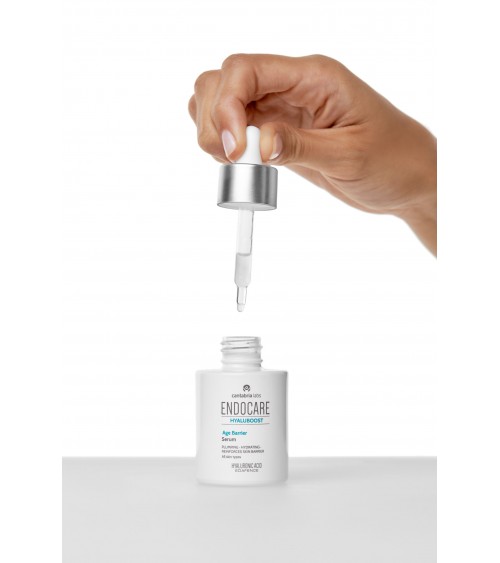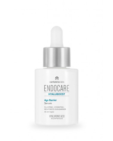 Endocare hyaluboost age barrier: Serum hidratante antiedad formulado con nuestra tecnología patentada EDAFENCE junto con Niacinamida para una función barrera activa, Amino[Si] Complex y Ácido hialurónico de alto y bajo peso molecular que proporciona una hidratación long-lasting y afina las líneas de expresión. Para una piel más lisa, luminosa y rejuvenecida. Para primeros signos de la edad, para recuperar la función barrera debilitada por tratamientos agresivos o como síntoma de la edad.