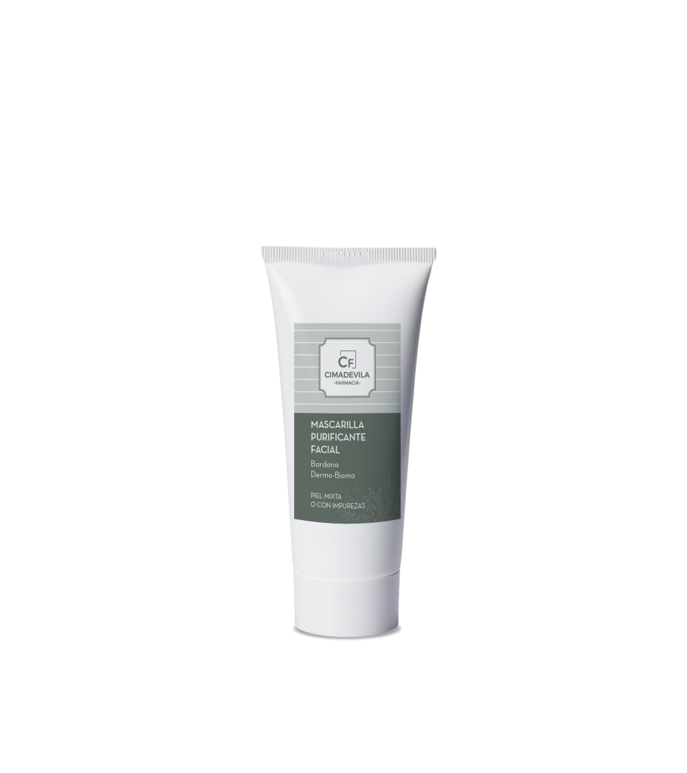 Mascarilla purificante a base de Arcilla blanca que elimina el exceso de sebo, limpia los poros obstruidos y reequilibra la flora bacteriana cutánea gracias a la presencia de un extracto de probiótico, el Dermo-Bioma.
