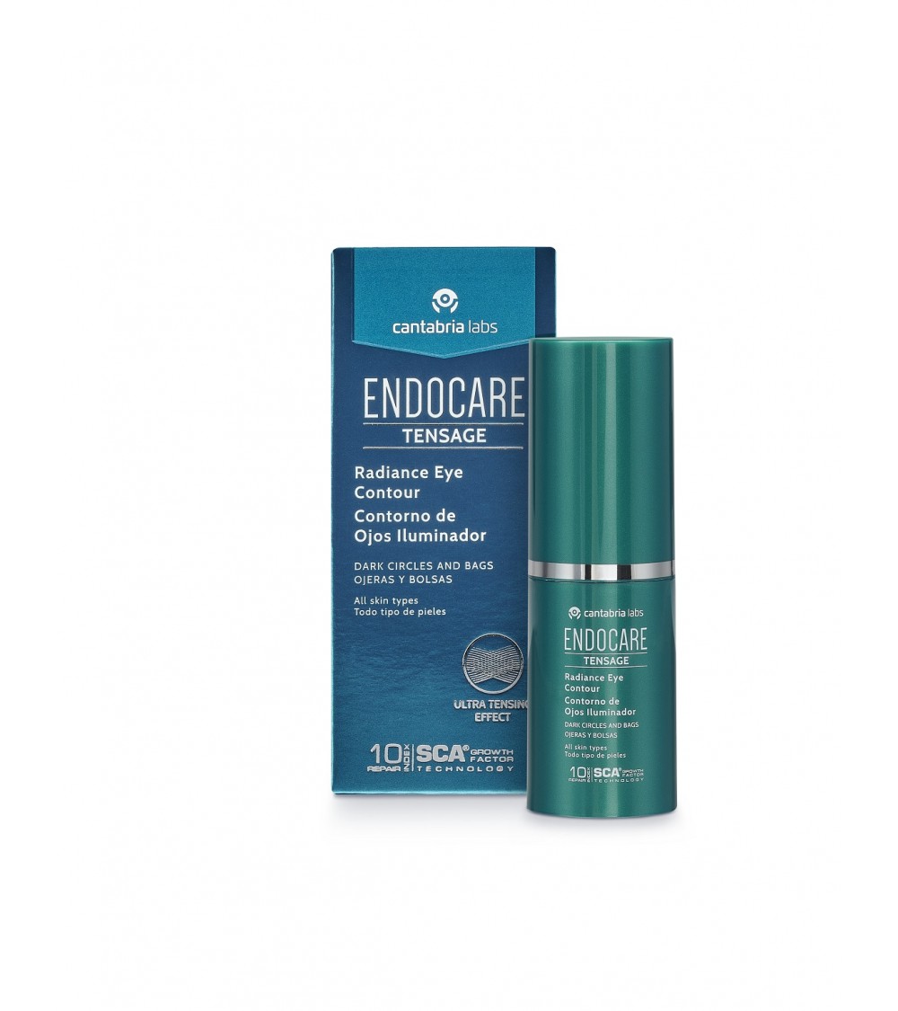 Endocare® Tensage Contorno de ojos iluminador es un fluido ligero con activos que contribuyen a reducir bolsas y rellenar arrugas superficiales. Sus micropigmentos coloreados iluminan la zona del contorno difuminando las ojeras.