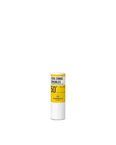 Cimadevila stick zonas sensibles SPF50+ contiene un sistema equilibrado de filtros fotoestables de última generación garantiza una protección full spectrum frente a los rayos UVB y UVA cortos y largos. También Vitamina E, antioxidante que ayuda a contrarrestar los radicales libres provocados por la exposición al sol, y ácido hialurónico de acción hidratante y antiedad.