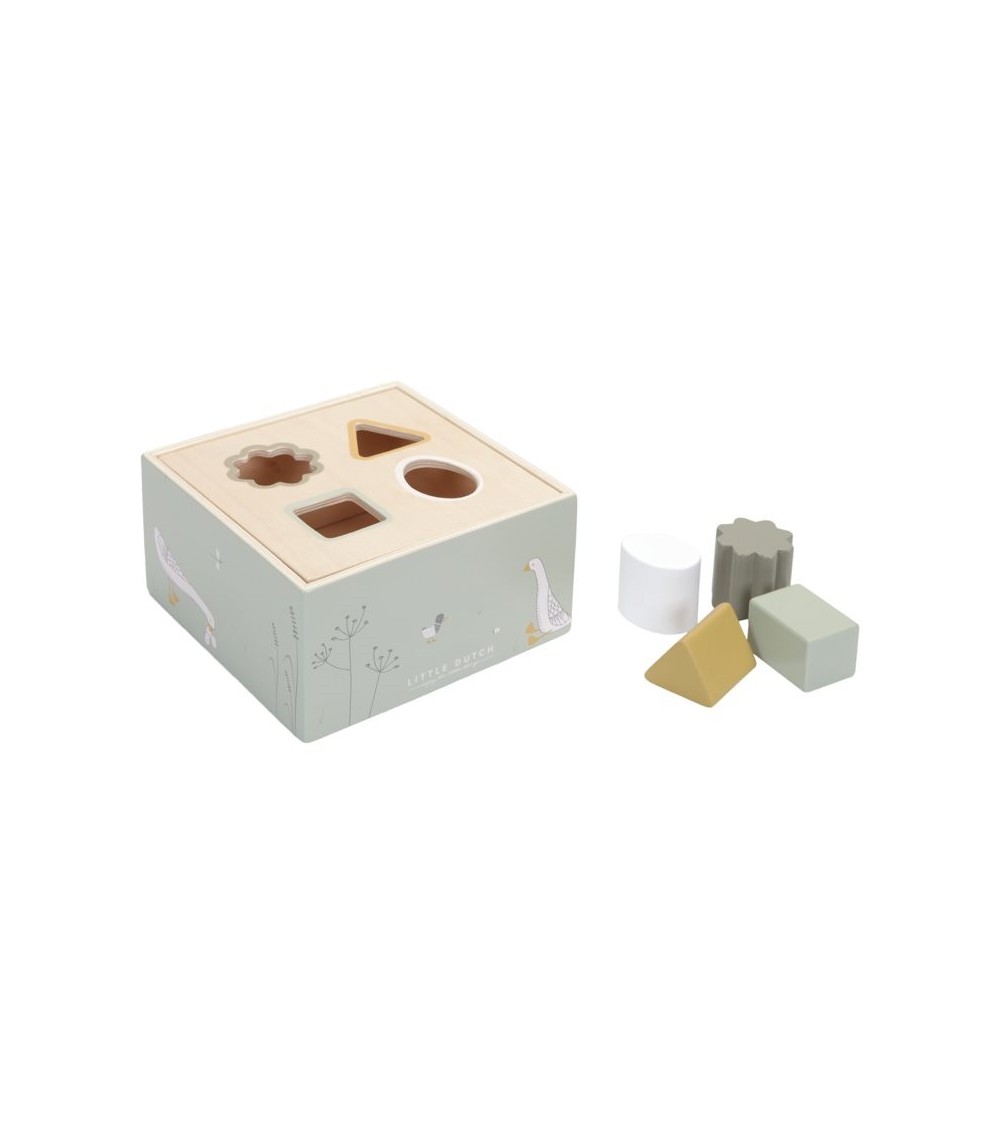 Little Dutch encajable de formas oliva: El clasificador de formas de madera es un juego de clasificación creativo para niños. Aprenden a reconocer y combinar formas y colores, mientras afinan su coordinación mano-ojo. La caja está ilustrada con Little Goose y sus amigos en el estanque del granjero y está hecha de madera resistente. Las manos pequeñas agarrarán fácilmente las formas para empujarlas hacia la abertura correcta. ¡Este juguete clásico es educativo y divertido al mismo tiempo!