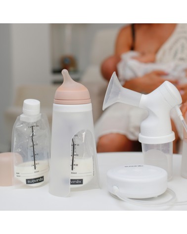 3. Llena el biberón con la leche materna o fórmula infantil siguiendo las recomendaciones del pediatra.