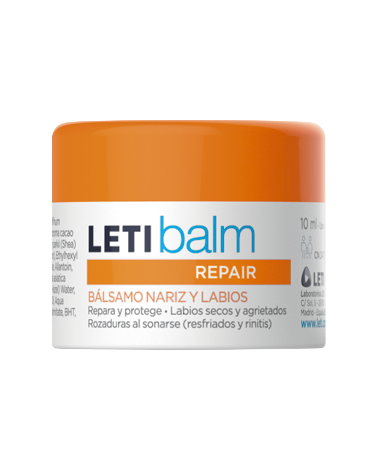 Letibalm pediátrico calma, regenera y repara los labios secos y agrietados así como las irritaciones causadas al sonarse con su acción reparadora intensa, emoliente, hidratante y protectora. Nutre la piel reduciendo la tirantez y grietas de los labios y protege contra las agresiones externas.