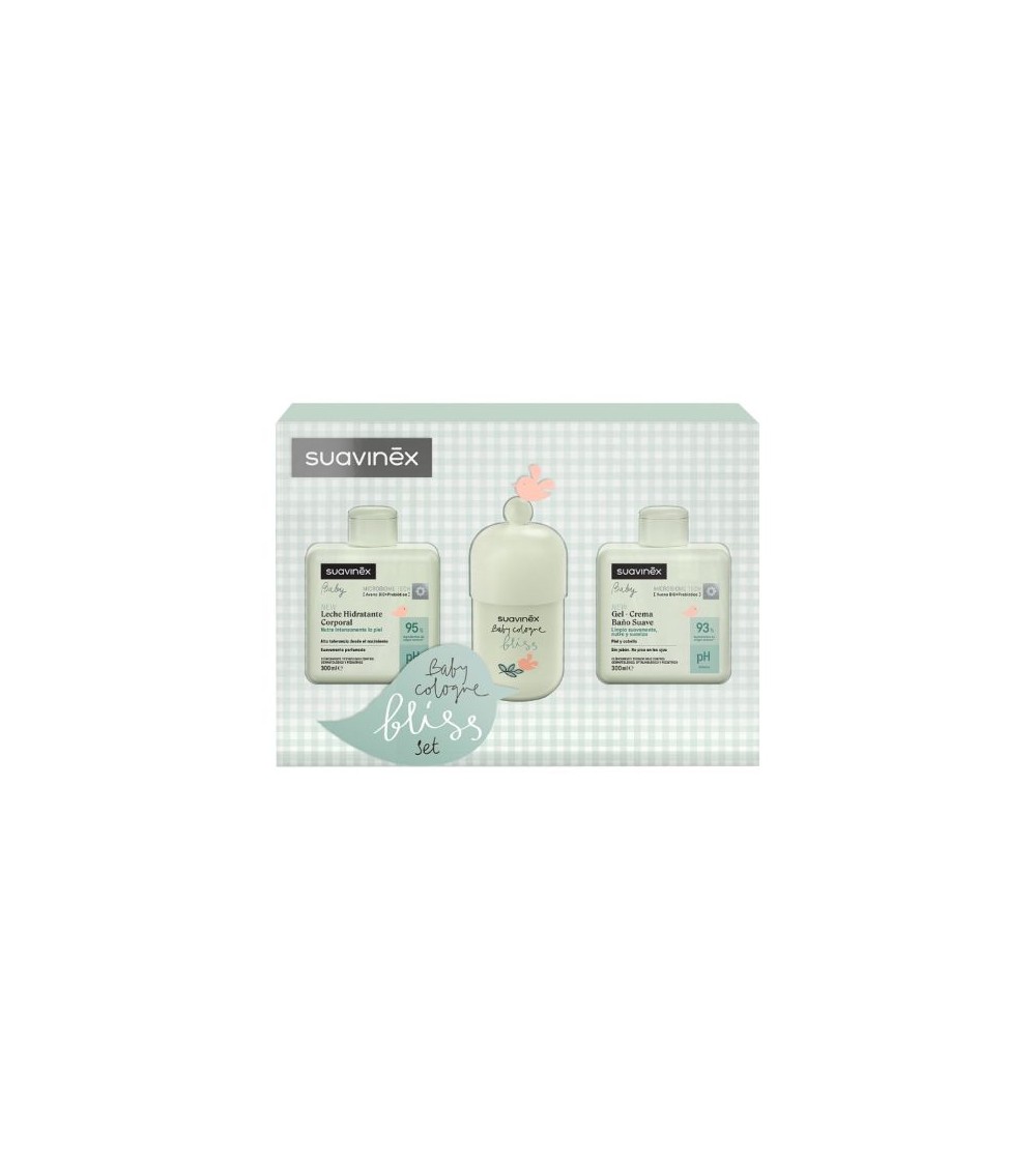El Set de Suavinex Baby Cologne Bliss es un estuche perfecto para regalar o disfrutar del ritual diario de cuidado del bebé. Incluye tres productos especialmente formulados con ingredientes de origen natural que respetan la piel delicada de los más pequeños: