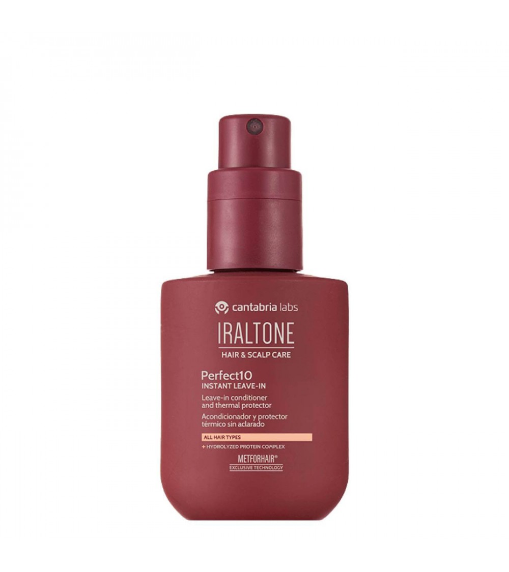 El Iraltone Hair Scalp Care Perfect10 Leave-In Acondicionador Sin Aclarado es un tratamiento capilar leave-in desarrollado para aportar múltiples beneficios en una sola aplicación. Su fórmula ligera y no grasa envuelve la fibra capilar para suavizar, facilitar el peinado y proteger el cabello frente al daño térmico y el encrespamiento.