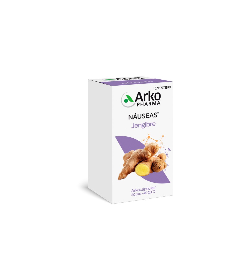 Arkocápsulas Jengibre es un complemento que ayuda a luchar contra las náuseas durante el primer período del embarazo o en caso de mareo durante los viajes (barco, coche, avión).