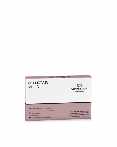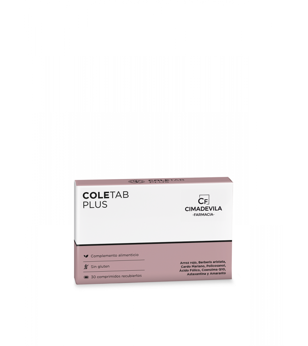 Cimadevila Coletab es un complemento alimenticio a base de Arroz de levadura roja, Astaxantina, Policosanoles, Ácido fólico y Coenzima Q10. Es útil para personas que desean una ayuda para controlar los niveles de colesterol en la sangre mediante la alimentación y con complementos. Ejerce su efecto actuando sobre la síntesis hepática de colesterol.