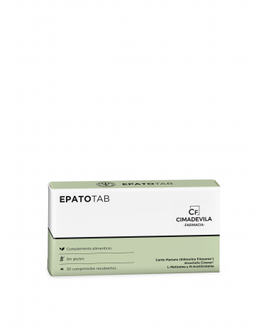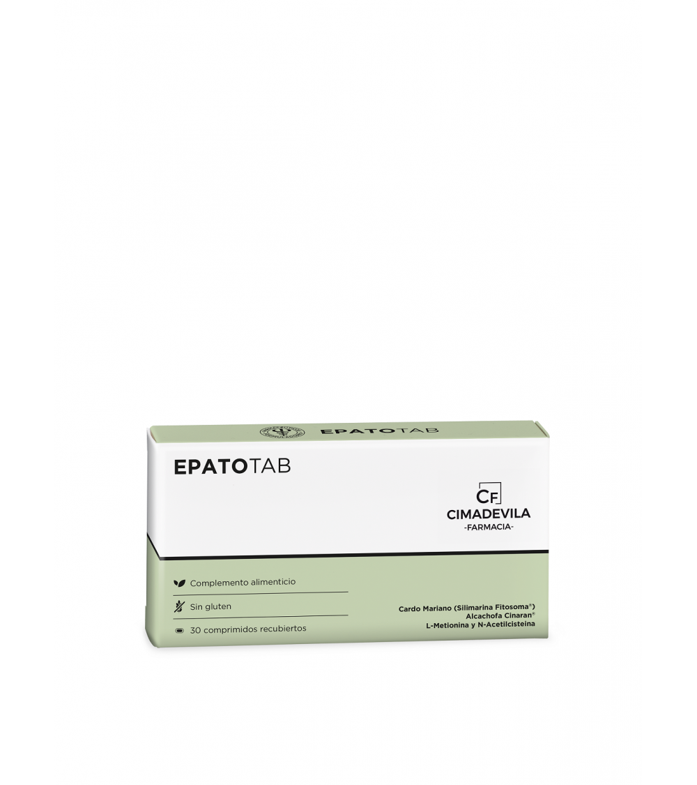 Cimadevila Epatotab detox hígado es un complemento alimenticio a base de  Alcachofa, Cardo mariano, N-acetilisteína y L-metionina. Depura el organismo y ayuda al correcto funcionamiento del hígado haciendo un detox además de tener una notable actividad antioxidante. Está especialmente indicado en personas que utilizan con frecuencia medicamentos, que tienen dificultades digestivas o que están en contacto con polución urbana y contaminación.