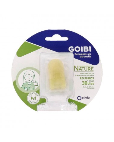Colocar el recambio dentro de la pulsera Goibi Nature. Sustituirlo cuando pierda intensidad de aroma o tras 15 días de uso continuado.