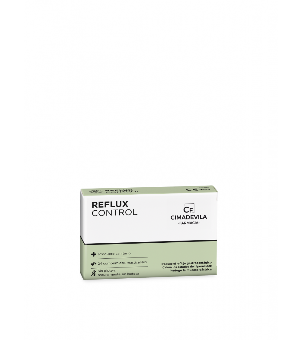 Cimadevila Reflux Control comprimidos es un producto sanitario para reducir el reflujo gastroesofágico, calmar los estados de hiperacidez y proteger la mucosa gástrica.